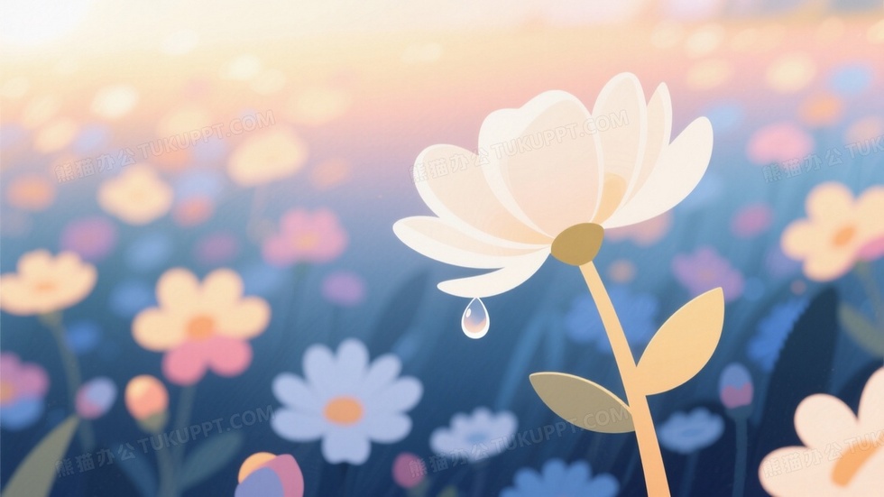 本作品内容为好看的扁平插画风格早晨的暖光洒在挂着一滴露珠的鲜花上, 格式为 jpg, 大小1 MB, 图片尺寸为1664 x 936, 源文件无水印, 欢迎使用熊猫办公。 如认为平台内容涉嫌侵权,可通过邮件:tousu@tukuppt.com提出书面通知,我们将及时处理。