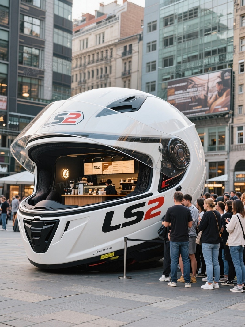 首页 > 插画 > 科技艺术 > 其他 > 在一个城市广场中一个巨型头盔屋