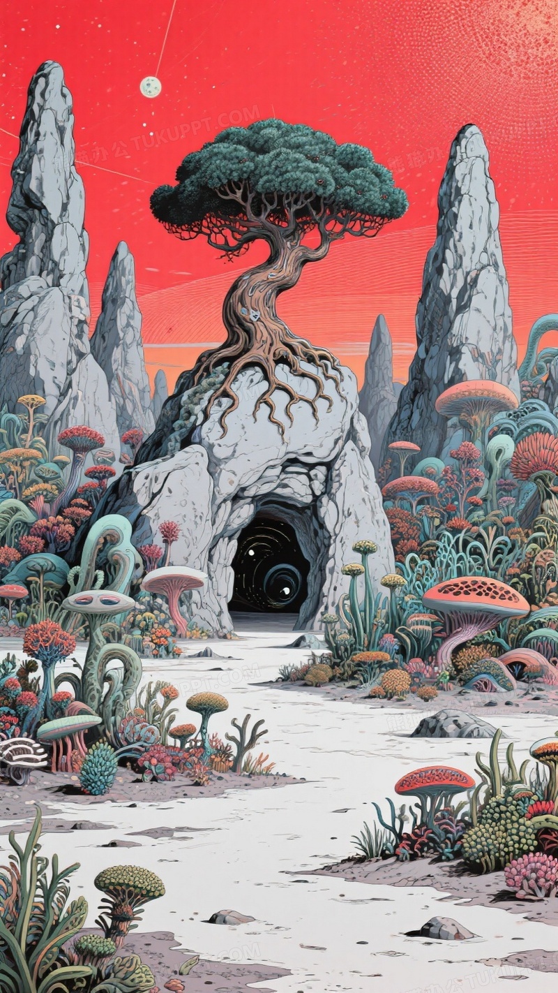 本作品内容为超现实景观巨型有机雕塑群, 格式为 jpg, 大小1 MB, 图片尺寸为936 x 1664, 源文件无水印, 欢迎使用熊猫办公。 如认为平台内容涉嫌侵权,可通过邮件:tousu@tukuppt.com提出书面通知,我们将及时处理。