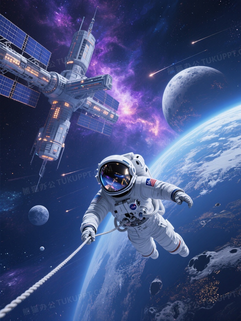 本作品内容为场景描述一位宇航员漂浮在浩瀚的外太空中, 格式为 jpg, 大小1 MB, 图片尺寸为1104 x 1472, 源文件无水印, 欢迎使用熊猫办公。 如认为平台内容涉嫌侵权,可通过邮件:tousu@tukuppt.com提出书面通知,我们将及时处理。