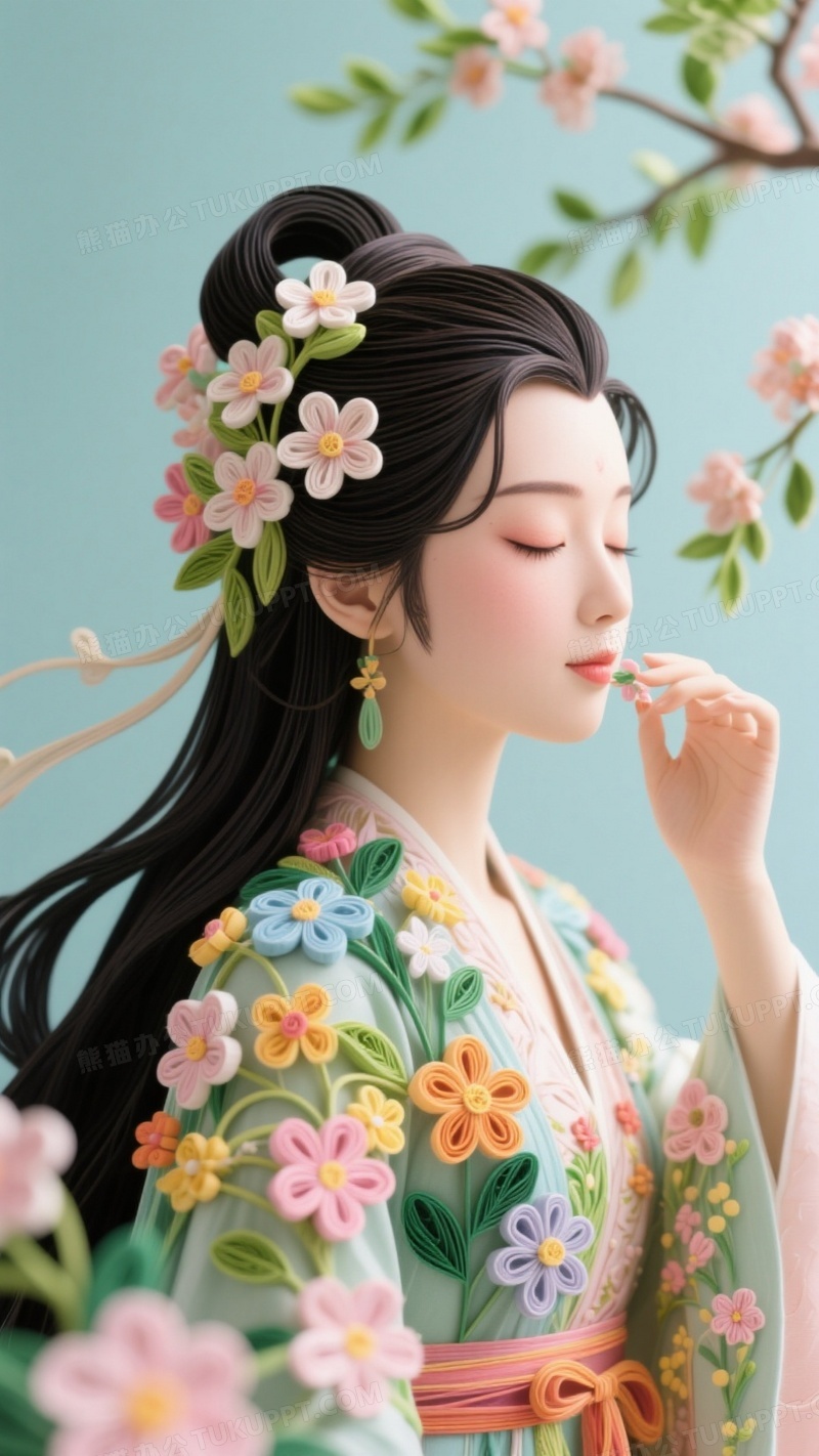 本作品内容为衍纸艺术春风吻过眉梢, 格式为 jpg, 大小1 MB, 图片尺寸为936 x 1664, 源文件无水印, 欢迎使用熊猫办公。 如认为平台内容涉嫌侵权,可通过邮件:tousu@tukuppt.com提出书面通知,我们将及时处理。