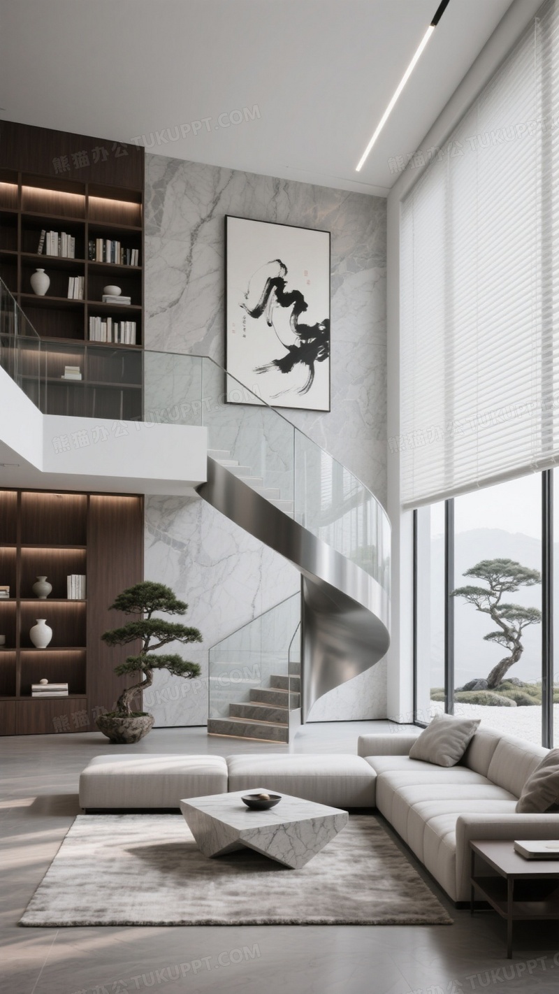 本作品内容为以下是为现代极简风格别墅客厅设计的AI提示词, 格式为 jpg, 大小1 MB, 图片尺寸为936 x 1664, 源文件无水印, 欢迎使用熊猫办公。 如认为平台内容涉嫌侵权,可通过邮件:tousu@tukuppt.com提出书面通知,我们将及时处理。