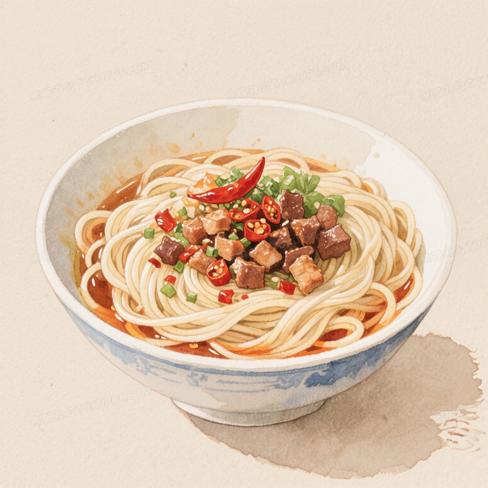 本作品内容为一碗面条上边有辣椒末和肉丁等配菜, 格式为 jpg, 大小1 MB, 图片尺寸为1536 x 1536, 源文件无水印, 欢迎使用熊猫办公。 如认为平台内容涉嫌侵权,可通过邮件:tousu@tukuppt.com提出书面通知,我们将及时处理。
