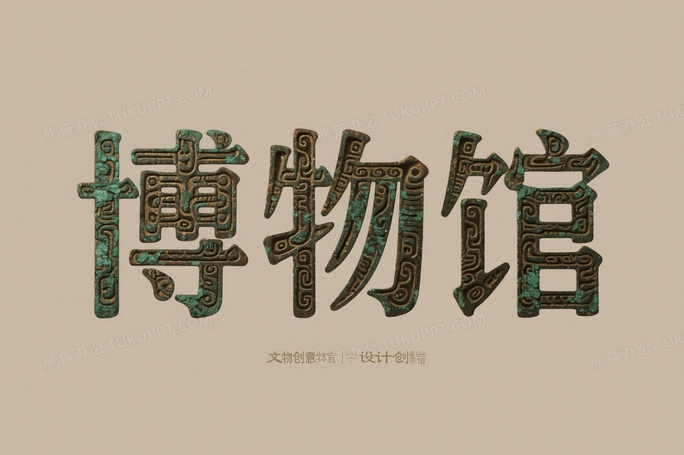 本作品内容为古文物图腾风格字体设计与创作, 格式为 jpg, 大小1 MB, 图片尺寸为1584 x 1056, 源文件无水印, 欢迎使用熊猫办公。 如认为平台内容涉嫌侵权,可通过邮件:tousu@tukuppt.com提出书面通知,我们将及时处理。