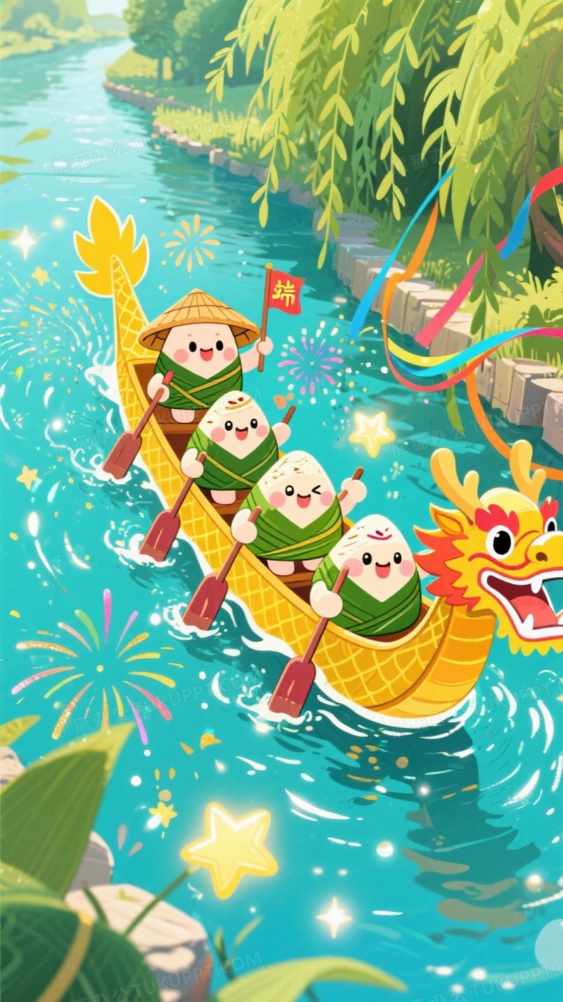 本作品内容为端午卡通插画金黄龙舟载着萌版粽子选手划桨竞渡, 格式为 jpg, 大小1 MB, 图片尺寸为936 x 1664, 源文件无水印, 欢迎使用熊猫办公。 如认为平台内容涉嫌侵权,可通过邮件:tousu@tukuppt.com提出书面通知,我们将及时处理。