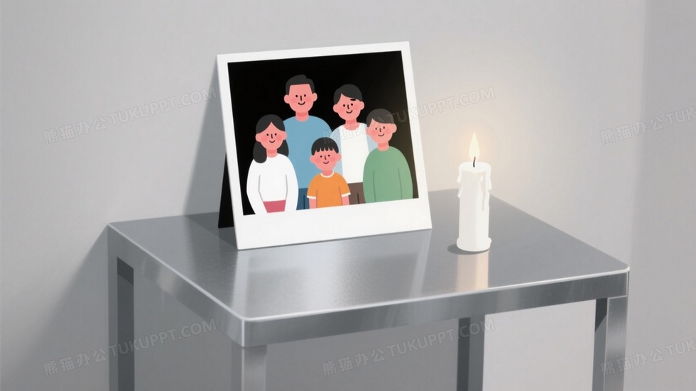 本作品内容为简约风卡通插画灰色的金属桌上摆放着一家五口的合影照片, 格式为 jpg, 大小1 MB, 图片尺寸为1664 x 936, 源文件无水印, 欢迎使用熊猫办公。 如认为平台内容涉嫌侵权,可通过邮件:tousu@tukuppt.com提出书面通知,我们将及时处理。