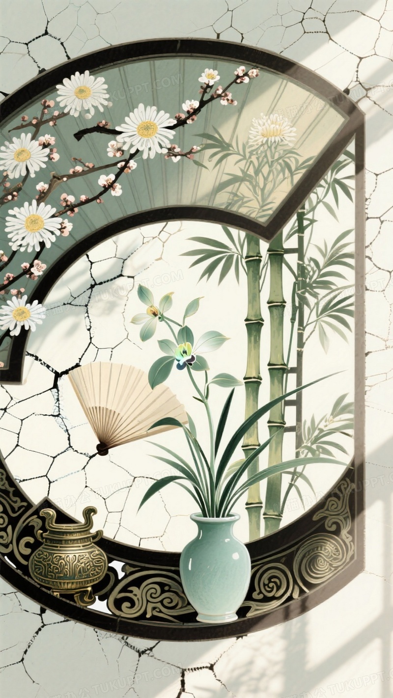 本作品内容为环形构图植物纹样插画, 格式为 jpg, 大小1 MB, 图片尺寸为936 x 1664, 源文件无水印, 欢迎使用熊猫办公。 如认为平台内容涉嫌侵权,可通过邮件:tousu@tukuppt.com提出书面通知,我们将及时处理。