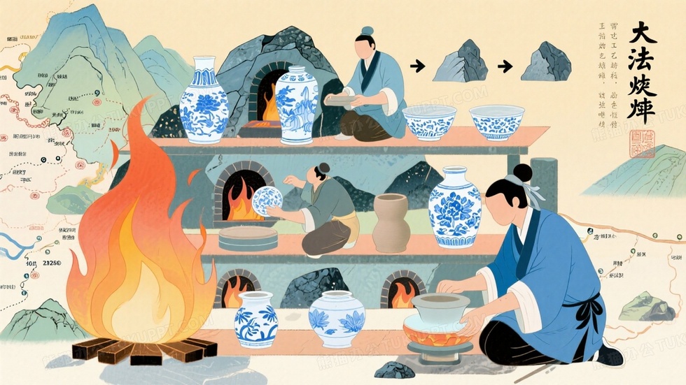 本作品内容为青花瓷制作工艺流程插画, 格式为 jpg, 大小1 MB, 图片尺寸为1664 x 936, 源文件无水印, 欢迎使用熊猫办公。 如认为平台内容涉嫌侵权,可通过邮件:tousu@tukuppt.com提出书面通知,我们将及时处理。