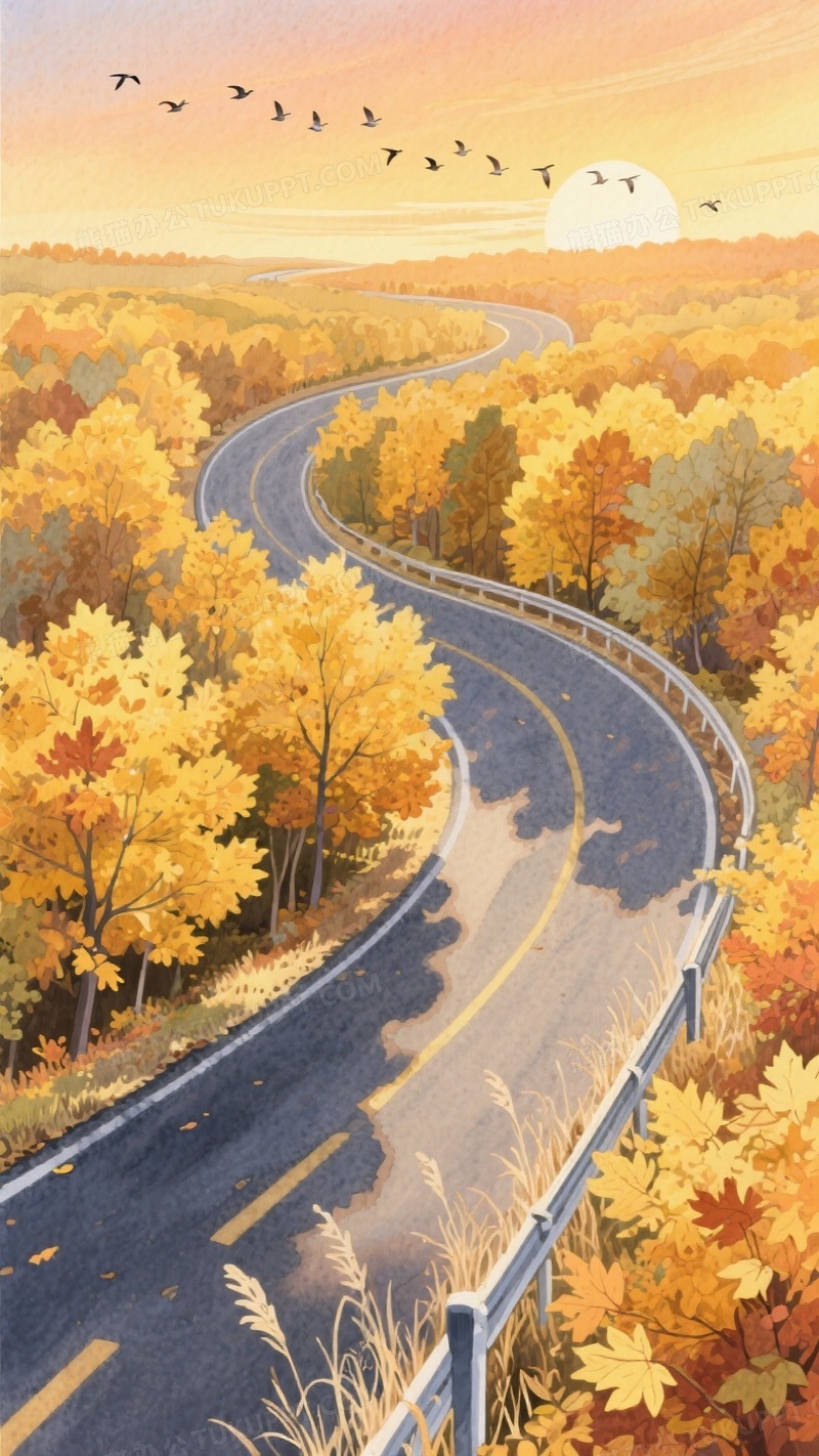 本作品内容为秋日公路插画蜿蜒柏油路穿过金黄枫叶林, 格式为 jpg, 大小1 MB, 图片尺寸为936 x 1664, 源文件无水印, 欢迎使用熊猫办公。 如认为平台内容涉嫌侵权,可通过邮件:tousu@tukuppt.com提出书面通知,我们将及时处理。