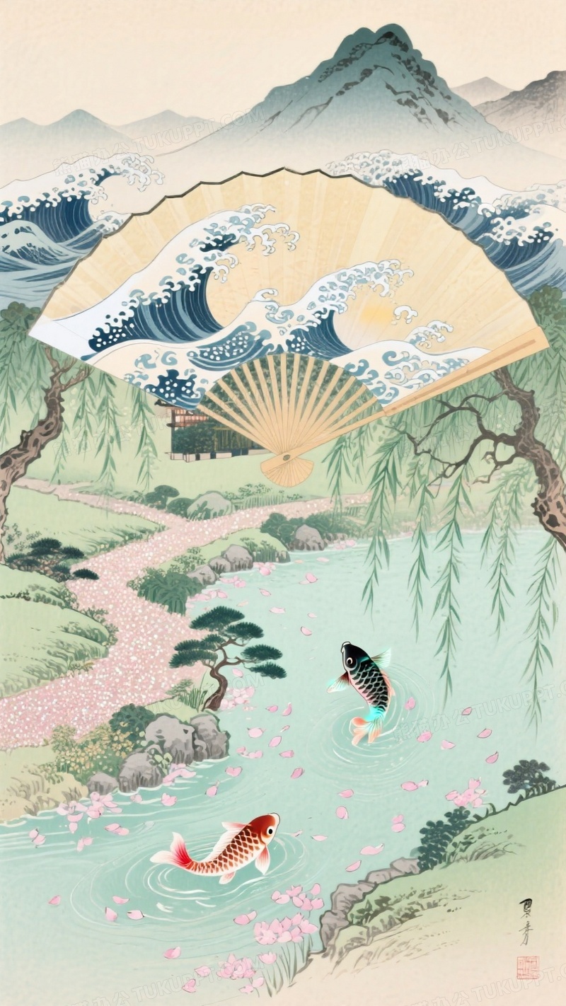 本作品内容为浮世绘风格江南夏景扇形构图容纳曲径通幽的园林, 格式为 jpg, 大小1 MB, 图片尺寸为936 x 1664, 源文件无水印, 欢迎使用熊猫办公。 如认为平台内容涉嫌侵权,可通过邮件:tousu@tukuppt.com提出书面通知,我们将及时处理。