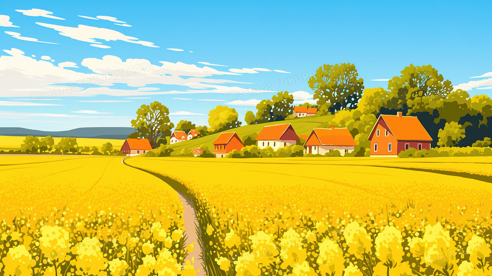 首页 > 插画 > 科技艺术 > 卡通漫画 > 春季盛开的油菜花花海天空云层插画
