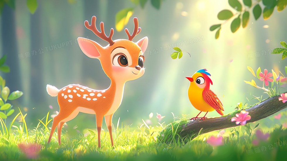 本作品内容为卡通风格森林小动物小鹿插画, 格式为 jpg, 大小3 MB, 图片尺寸为2912 x 1632, 源文件无水印, 欢迎使用熊猫办公。 如认为平台内容涉嫌侵权,可通过邮件:tousu@tukuppt.com提出书面通知,我们将及时处理。