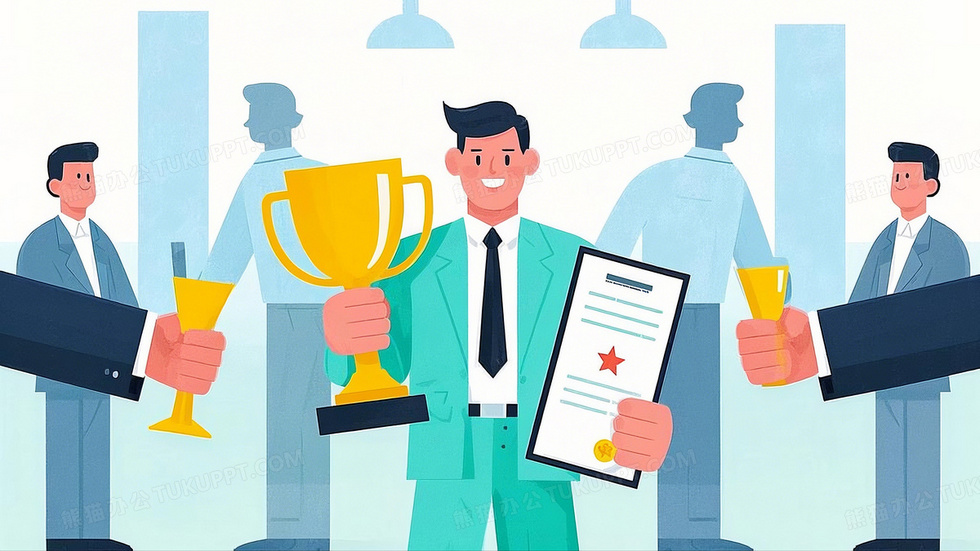 本作品内容为扁平化员工奖杯场景插画, 格式为 jpg, 大小2 MB, 图片尺寸为2720 x 1530, 源文件无水印, 欢迎使用熊猫办公。 如认为平台内容涉嫌侵权,可通过邮件:tousu@tukuppt.com提出书面通知,我们将及时处理。