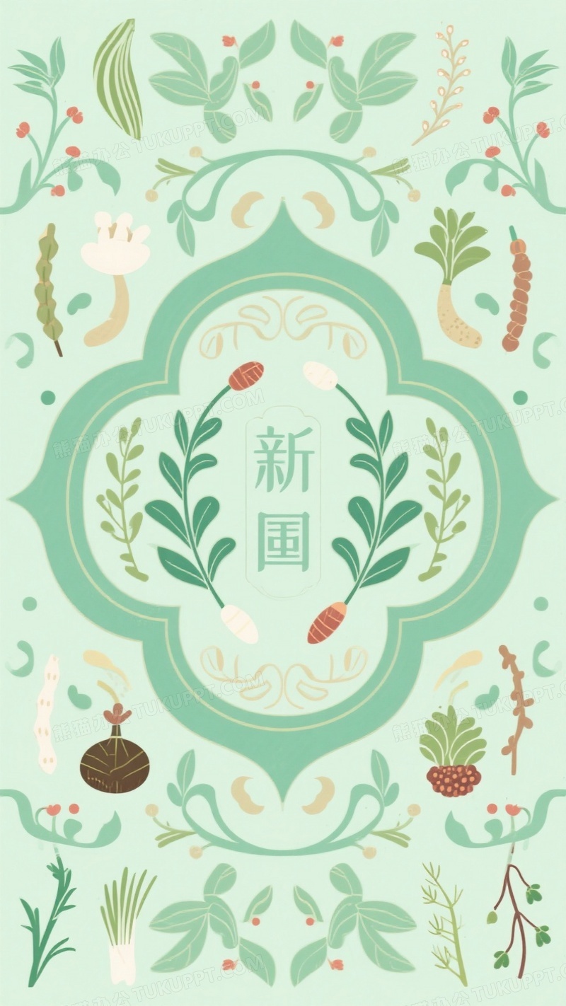 本作品内容为设计一张的背景图浅绿色调背景融入传统草药纹样, 格式为 jpg, 大小1 MB, 图片尺寸为936 x 1664, 源文件无水印, 欢迎使用熊猫办公。 如认为平台内容涉嫌侵权,可通过邮件:tousu@tukuppt.com提出书面通知,我们将及时处理。