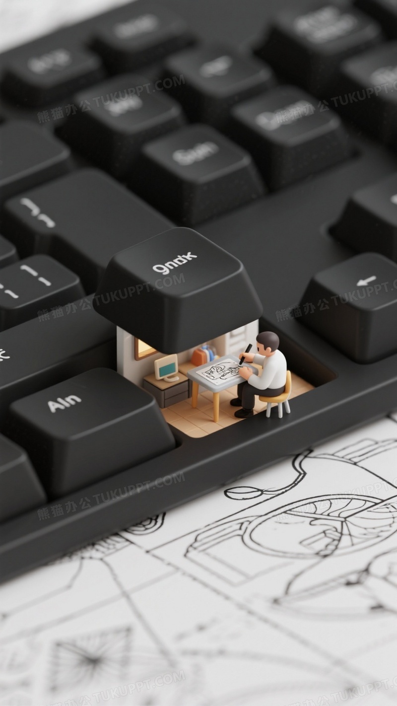 本作品内容为一幅等距3D插画刻画了黑色的绘图键盘上其中一颗被揭开的键盘键帽下, 格式为 jpg, 大小1 MB, 图片尺寸为936 x 1664, 源文件无水印, 欢迎使用熊猫办公。 如认为平台内容涉嫌侵权,可通过邮件:tousu@tukuppt.com提出书面通知,我们将及时处理。