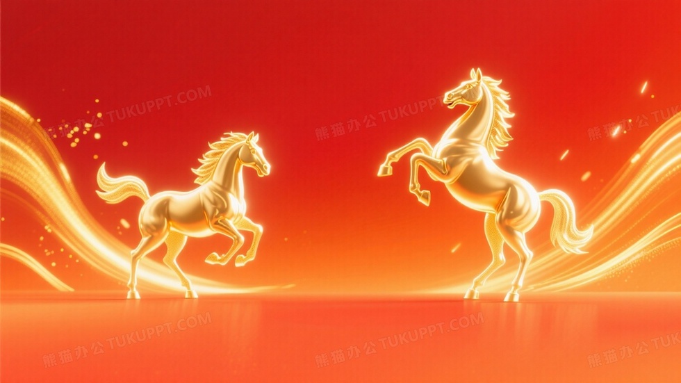 本作品内容为马年主题活动画面两侧靠边各有1匹小小的金色发光骏马, 格式为 jpg, 大小1 MB, 图片尺寸为1664 x 936, 作品中背景图片无需修改, 源文件无水印,可以直接使用, 欢迎使用熊猫办公。 如认为平台内容涉嫌侵权,可通过邮件:tousu@tukuppt.com提出书面通知,我们将及时处理。