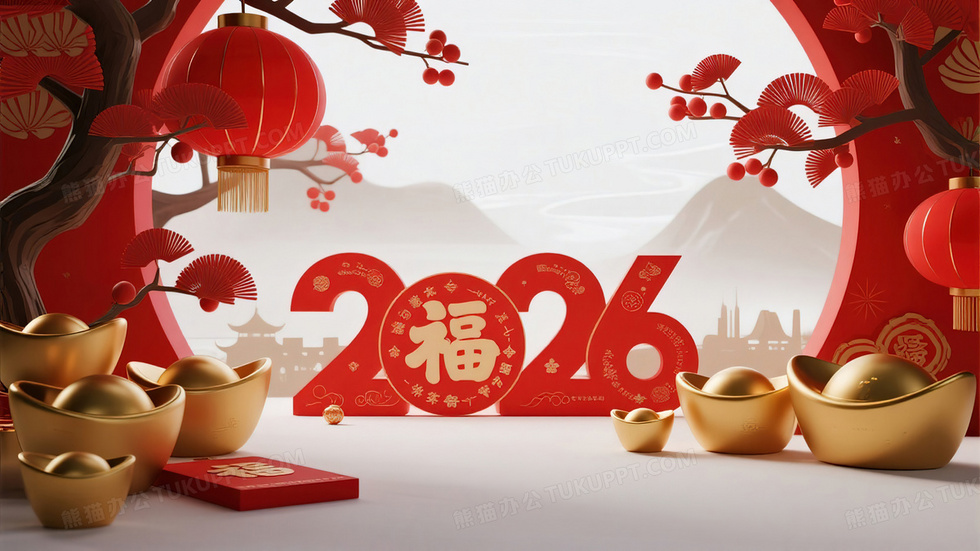 本作品内容为马年春节红色3D创意数字2026喜庆插画, 格式为 jpg, 大小3 MB, 图片尺寸为3328 x 1872, 源文件无水印, 欢迎使用熊猫办公。 如认为平台内容涉嫌侵权,可通过邮件:tousu@tukuppt.com提出书面通知,我们将及时处理。