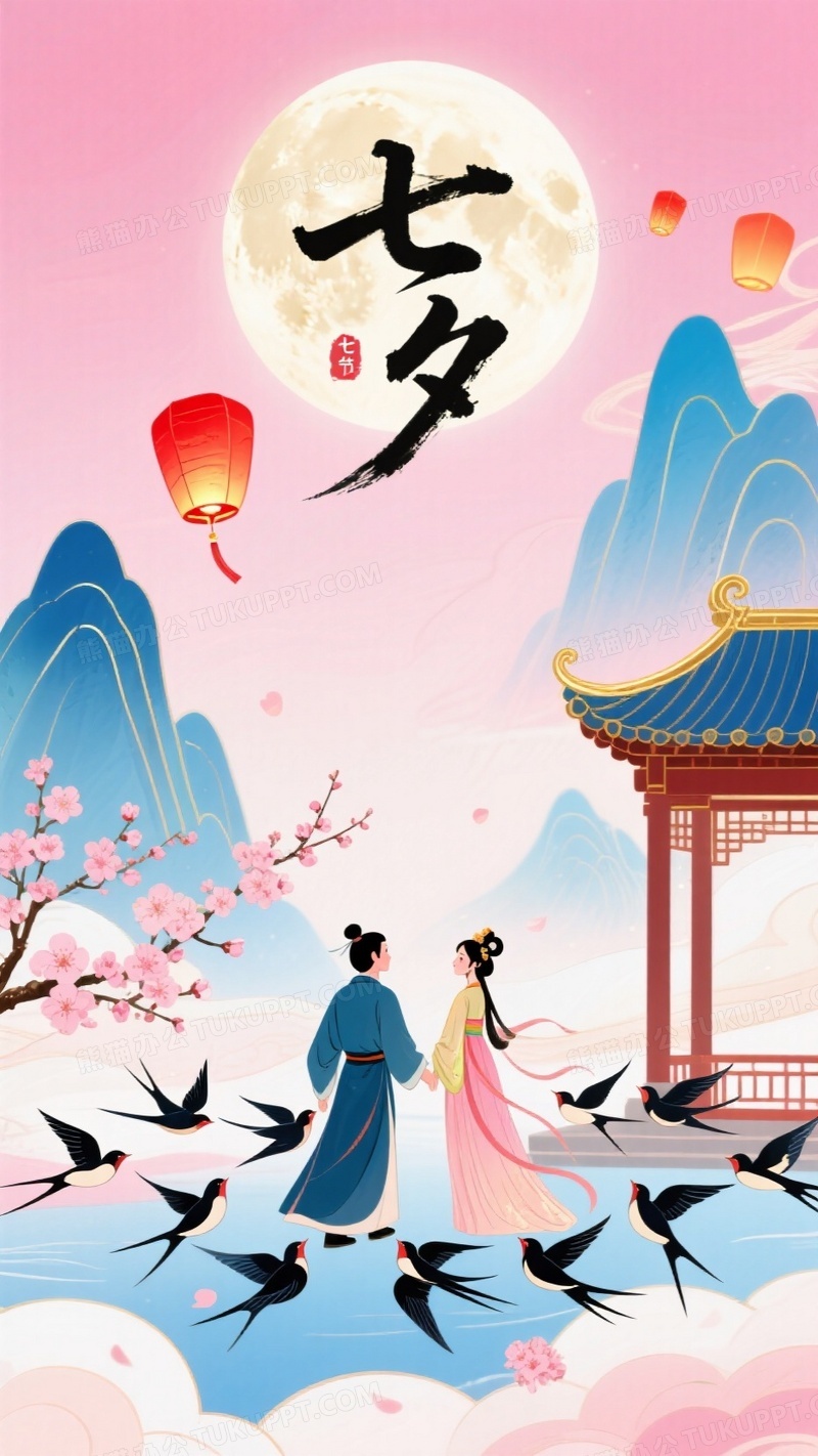 本作品内容为国潮插画风格七夕节主题, 格式为 jpg, 大小1 MB, 图片尺寸为936 x 1664, 源文件无水印, 欢迎使用熊猫办公。 如认为平台内容涉嫌侵权,可通过邮件:tousu@tukuppt.com提出书面通知,我们将及时处理。