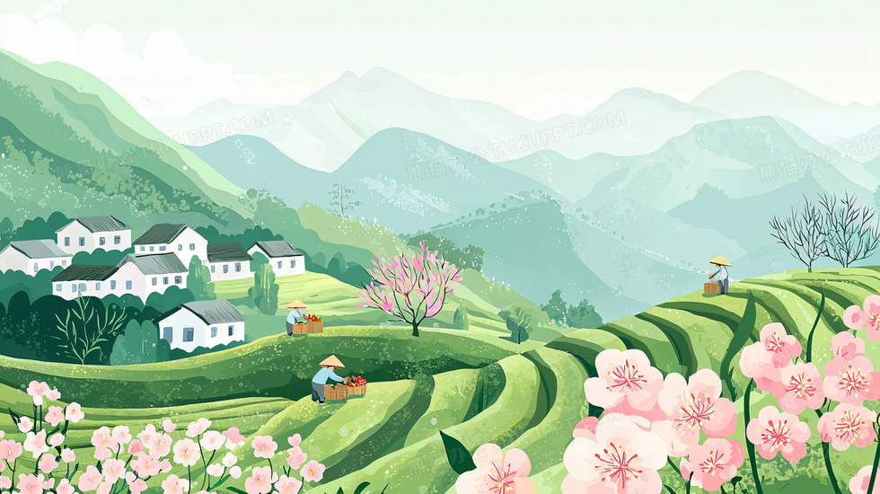 本作品内容为春天梯田乡村樱花美丽风景插画, 格式为 jpg, 大小5 MB, 图片尺寸为2912 x 1632, 源文件无水印, 欢迎使用熊猫办公。 如认为平台内容涉嫌侵权,可通过邮件:tousu@tukuppt.com提出书面通知,我们将及时处理。