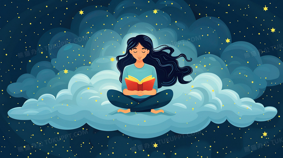 本作品内容为手绘女孩在云层读书的背景, 格式为 jpg, 大小2 MB, 图片尺寸为2912 x 1632, 作品中背景图片无需修改, 源文件无水印,可以直接使用, 欢迎使用熊猫办公。 如认为平台内容涉嫌侵权,可通过邮件:tousu@tukuppt.com提出书面通知,我们将及时处理。