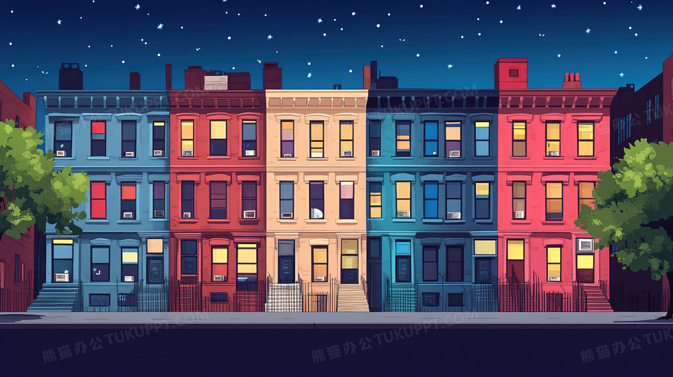本作品内容为夜晚亮灯的城市高楼大厦插画, 格式为 jpg, 大小3 MB, 图片尺寸为2912 x 1632, 源文件无水印, 欢迎使用熊猫办公。 如认为平台内容涉嫌侵权,可通过邮件:tousu@tukuppt.com提出书面通知,我们将及时处理。