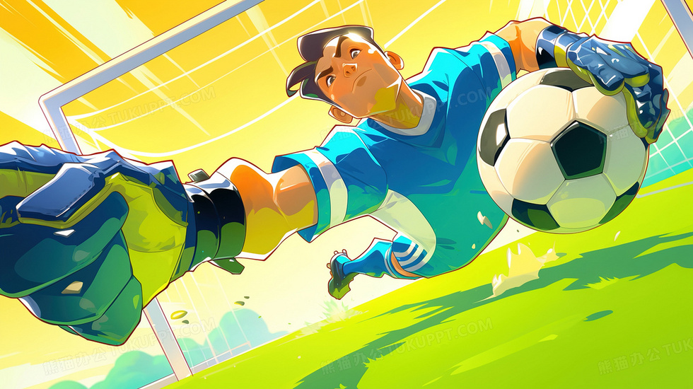 本作品内容为足球运动守门员插画, 格式为 jpg, 大小3 MB, 图片尺寸为2912 x 1632, 源文件无水印, 欢迎使用熊猫办公。 如认为平台内容涉嫌侵权,可通过邮件:tousu@tukuppt.com提出书面通知,我们将及时处理。