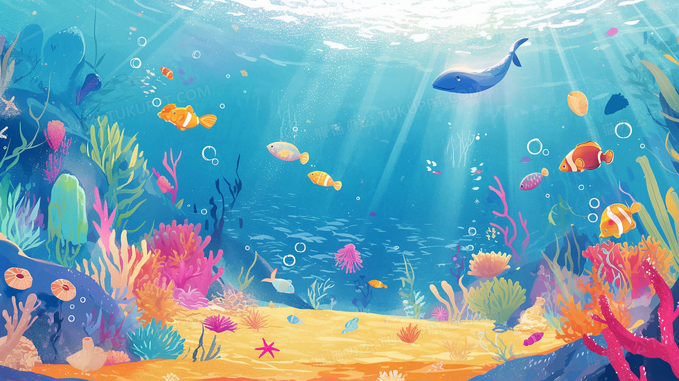 本作品内容为卡通海洋海底世界背景, 格式为 jpg, 大小1 MB, 图片尺寸为2912 x 1632, 作品中背景图片无需修改, 源文件无水印,可以直接使用, 欢迎使用熊猫办公。 如认为平台内容涉嫌侵权,可通过邮件:tousu@tukuppt.com提出书面通知,我们将及时处理。