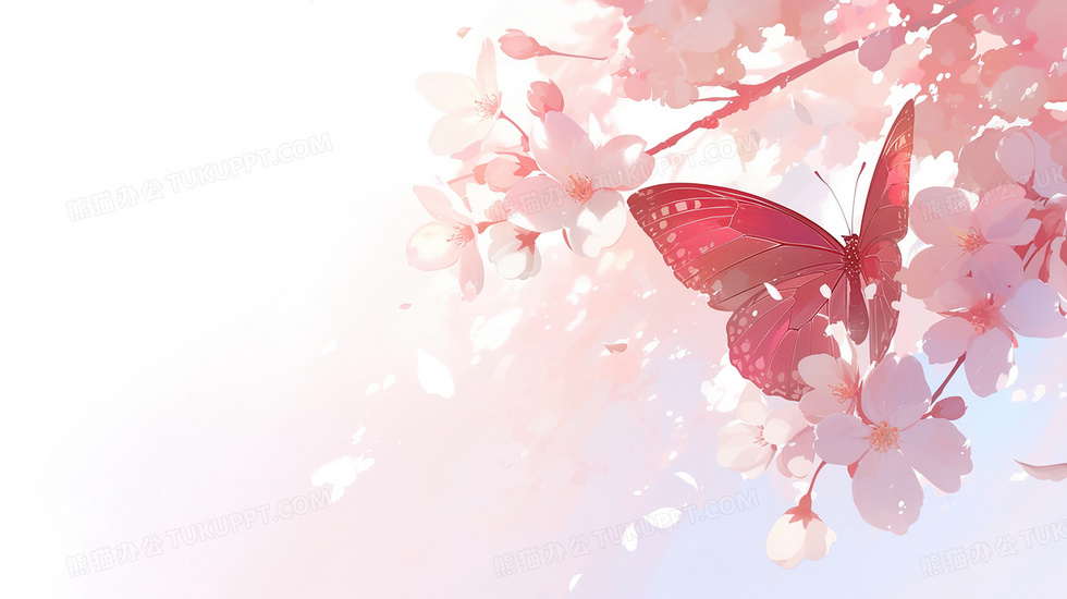 本作品内容为春季手绘蝴蝶背景, 格式为 jpg, 大小2 MB, 图片尺寸为2912 x 1632, 作品中背景图片无需修改, 源文件无水印,可以直接使用, 欢迎使用熊猫办公。 如认为平台内容涉嫌侵权,可通过邮件:tousu@tukuppt.com提出书面通知,我们将及时处理。