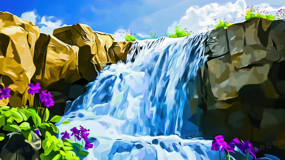 本作品内容为自然风景户外美丽的瀑布插画, 格式为 jpg, 大小3 MB, 图片尺寸为2912 x 1632, 源文件无水印, 欢迎使用熊猫办公。 如认为平台内容涉嫌侵权,可通过邮件:tousu@tukuppt.com提出书面通知,我们将及时处理。