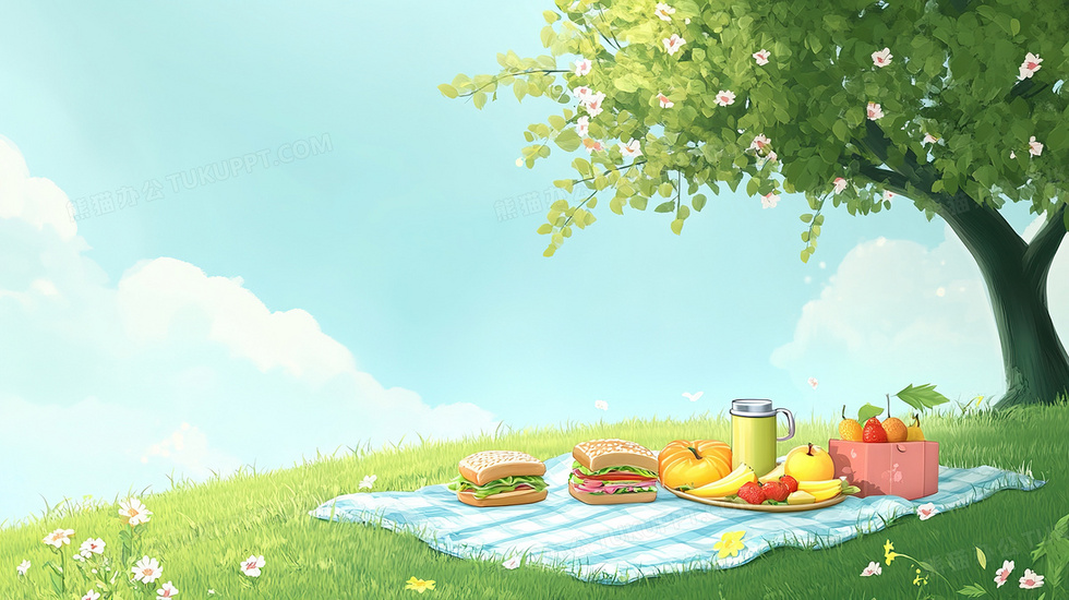 本作品内容为春天户外野餐背景, 格式为 jpg, 大小3 MB, 图片尺寸为2912 x 1632, 作品中背景图片无需修改, 源文件无水印,可以直接使用, 欢迎使用熊猫办公。 如认为平台内容涉嫌侵权,可通过邮件:tousu@tukuppt.com提出书面通知,我们将及时处理。