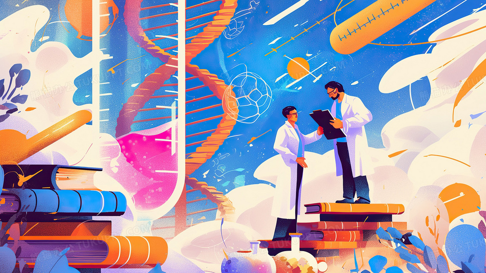本作品内容为研究基因的科学家插画, 格式为 jpg, 大小4 MB, 图片尺寸为2912 x 1632, 源文件无水印, 欢迎使用熊猫办公。 如认为平台内容涉嫌侵权,可通过邮件:tousu@tukuppt.com提出书面通知,我们将及时处理。