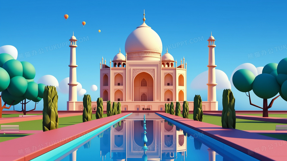 本作品内容为印度的泰姬陵三维插画, 格式为 jpg, 大小6 MB, 图片尺寸为2912 x 1632, 源文件无水印, 欢迎使用熊猫办公。 如认为平台内容涉嫌侵权,可通过邮件:tousu@tukuppt.com提出书面通知,我们将及时处理。