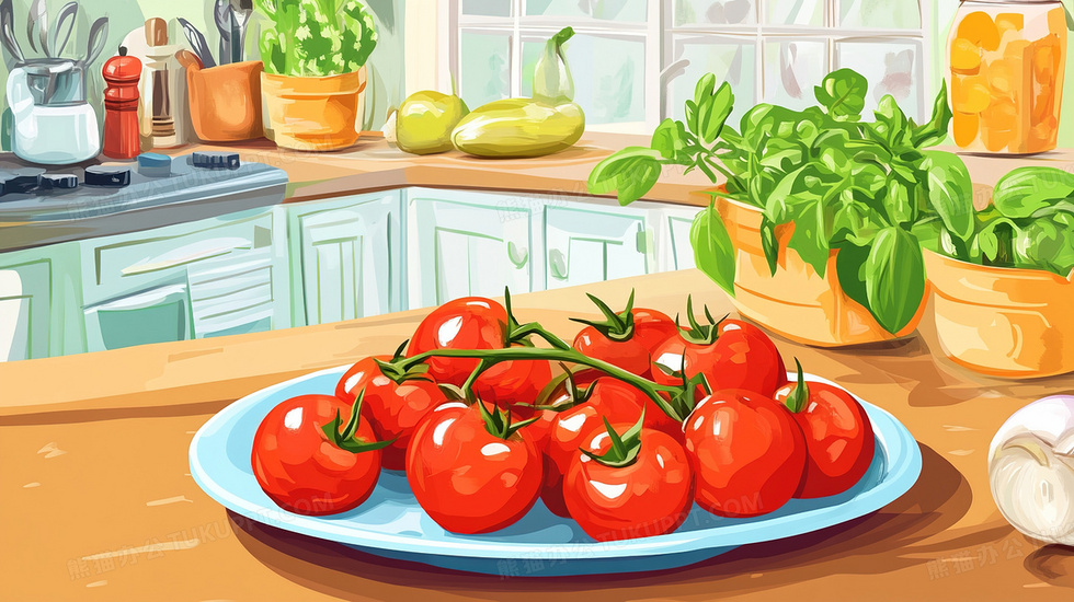 本作品内容为桌子上盘子里新鲜的圣女果插画, 格式为 jpg, 大小3 MB, 图片尺寸为2912 x 1632, 源文件无水印, 欢迎使用熊猫办公。 如认为平台内容涉嫌侵权,可通过邮件:tousu@tukuppt.com提出书面通知,我们将及时处理。