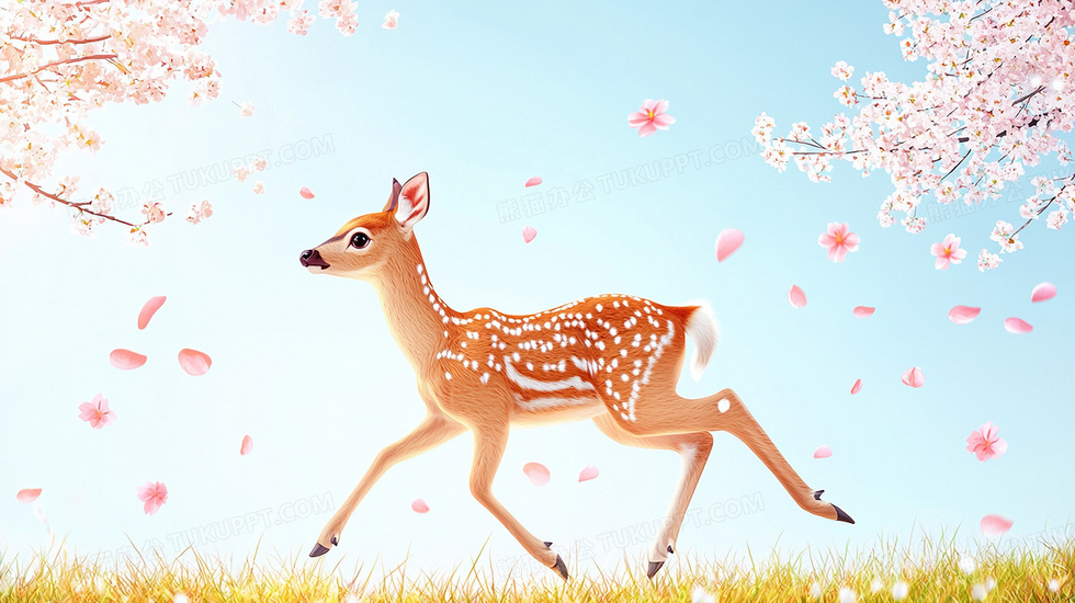本作品内容为植物花卉动物小鹿卡通背景, 格式为 jpg, 大小2 MB, 图片尺寸为2912 x 1632, 作品中背景图片无需修改, 源文件无水印,可以直接使用, 欢迎使用熊猫办公。 如认为平台内容涉嫌侵权,可通过邮件:tousu@tukuppt.com提出书面通知,我们将及时处理。