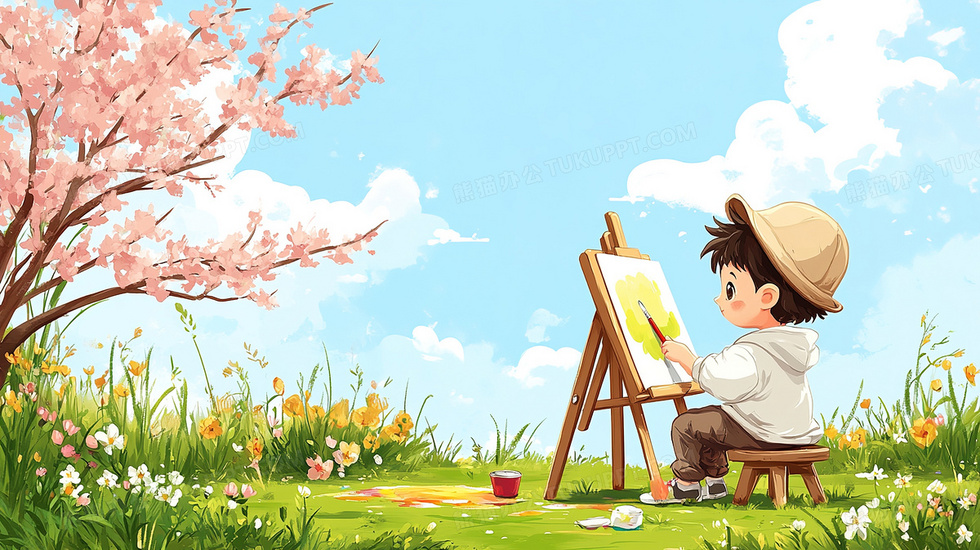 本作品内容为春天户外画画的可爱小男孩插画, 格式为 jpg, 大小3 MB, 图片尺寸为2912 x 1632, 源文件无水印, 欢迎使用熊猫办公。 如认为平台内容涉嫌侵权,可通过邮件:tousu@tukuppt.com提出书面通知,我们将及时处理。