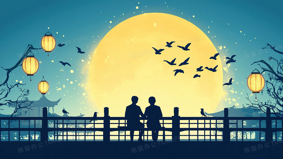 本作品内容为鹊桥情侣剪影风景唯美插画, 格式为 jpg, 大小3 MB, 图片尺寸为2912 x 1632, 源文件无水印, 欢迎使用熊猫办公。 如认为平台内容涉嫌侵权,可通过邮件:tousu@tukuppt.com提出书面通知,我们将及时处理。