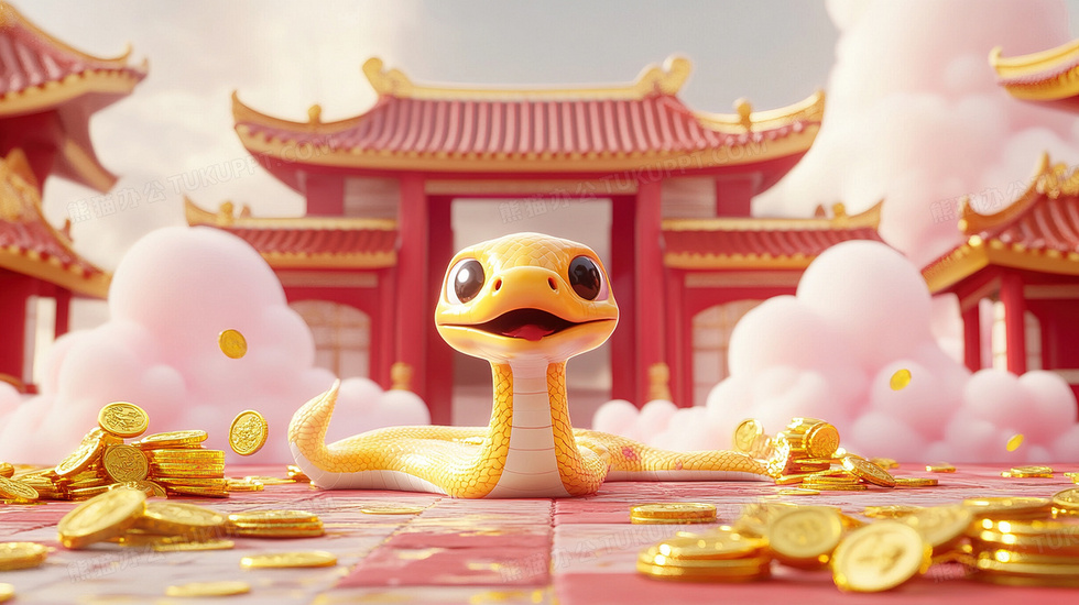 本作品内容为3D蛇年与爬行可爱蛇金币创意国潮建筑插画, 格式为 jpg, 大小3 MB, 图片尺寸为2912 x 1632, 源文件无水印, 欢迎使用熊猫办公。 如认为平台内容涉嫌侵权,可通过邮件:tousu@tukuppt.com提出书面通知,我们将及时处理。