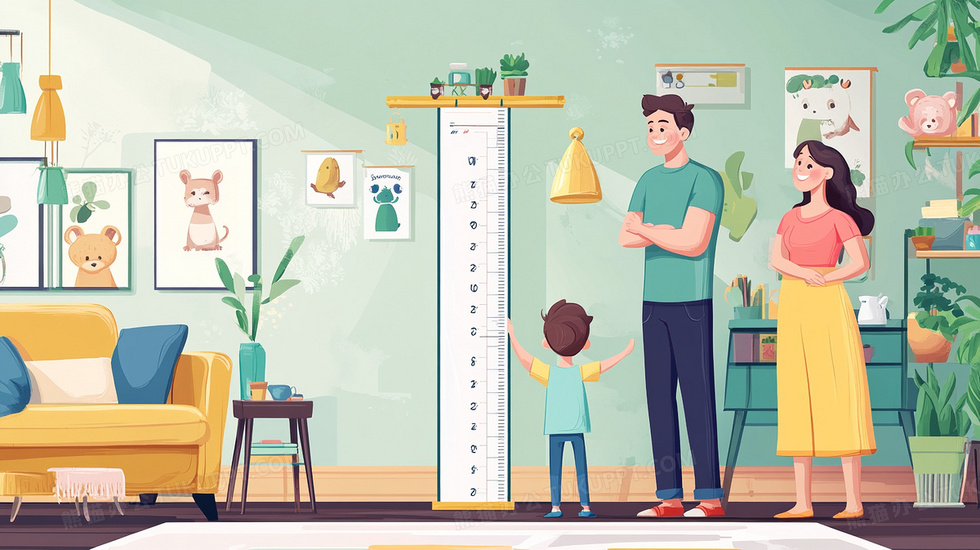 本作品内容为家中父母给孩子测量身高卡通插画, 格式为 jpg, 大小2 MB, 图片尺寸为2912 x 1632, 源文件无水印, 欢迎使用熊猫办公。 如认为平台内容涉嫌侵权,可通过邮件:tousu@tukuppt.com提出书面通知,我们将及时处理。