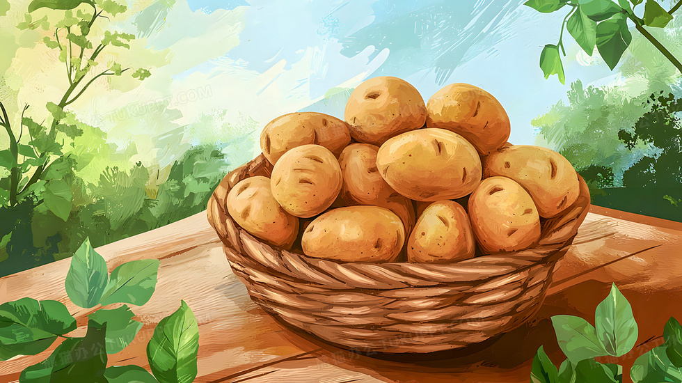 本作品内容为卡通风格蔬菜新鲜食材土豆马铃薯插画, 格式为 jpg, 大小4 MB, 图片尺寸为2912 x 1632, 源文件无水印, 欢迎使用熊猫办公。 如认为平台内容涉嫌侵权,可通过邮件:tousu@tukuppt.com提出书面通知,我们将及时处理。