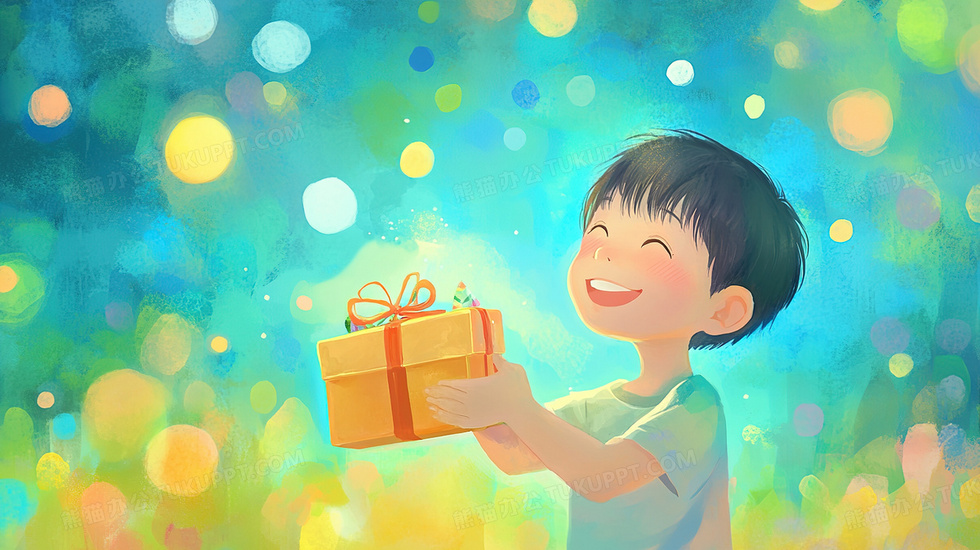 本作品内容为生日收到礼物的可爱卡通男孩插画, 格式为 jpg, 大小3 MB, 图片尺寸为2912 x 1632, 源文件无水印, 欢迎使用熊猫办公。 如认为平台内容涉嫌侵权,可通过邮件:tousu@tukuppt.com提出书面通知,我们将及时处理。