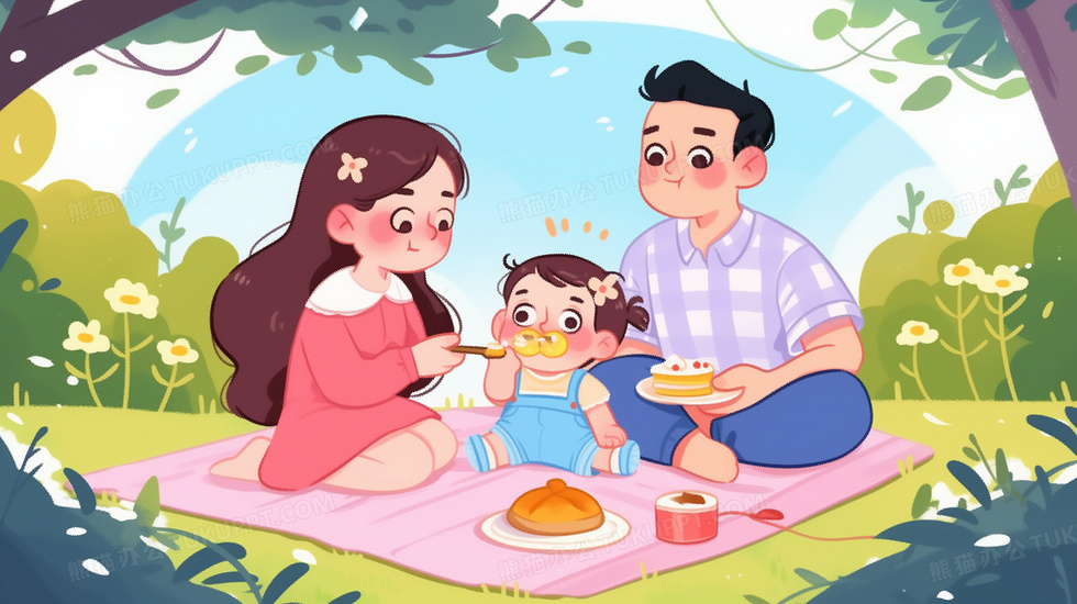 本作品内容为小婴儿和妈妈爸爸在草地上野餐插画, 格式为 jpg, 大小5 MB, 图片尺寸为2912 x 1632, 源文件无水印, 欢迎使用熊猫办公。 如认为平台内容涉嫌侵权,可通过邮件:tousu@tukuppt.com提出书面通知,我们将及时处理。
