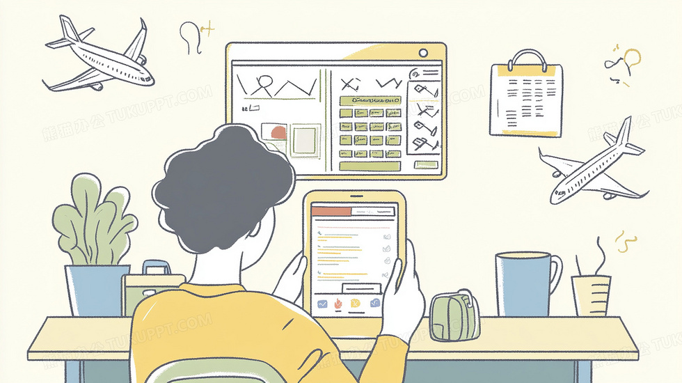 本作品内容为手机上订飞机票插画, 格式为 jpg, 大小2 MB, 图片尺寸为2912 x 1632, 源文件无水印, 欢迎使用熊猫办公。 如认为平台内容涉嫌侵权,可通过邮件:tousu@tukuppt.com提出书面通知,我们将及时处理。