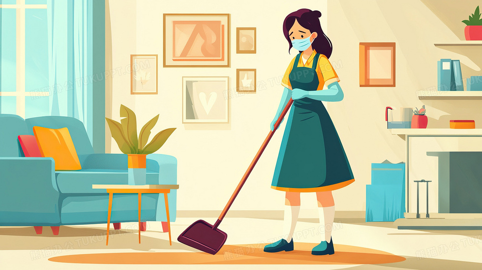 本作品内容为家政在清扫客厅插画, 格式为 jpg, 大小2 MB, 图片尺寸为2912 x 1632, 源文件无水印, 欢迎使用熊猫办公。 如认为平台内容涉嫌侵权,可通过邮件:tousu@tukuppt.com提出书面通知,我们将及时处理。