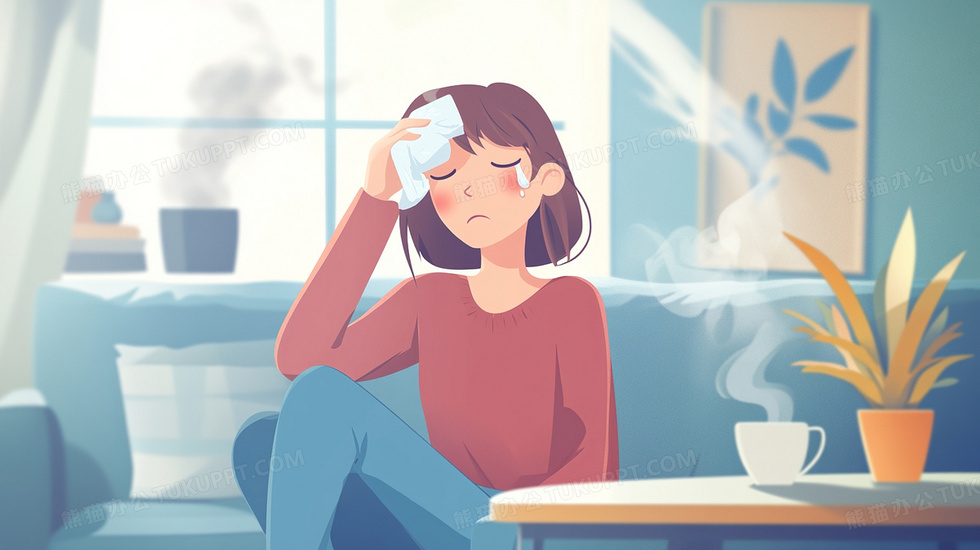 本作品内容为女孩因流感感冒在家中用冰袋降温的卡通插画, 格式为 jpg, 大小2 MB, 图片尺寸为2912 x 1632, 源文件无水印, 欢迎使用熊猫办公。 如认为平台内容涉嫌侵权,可通过邮件:tousu@tukuppt.com提出书面通知,我们将及时处理。