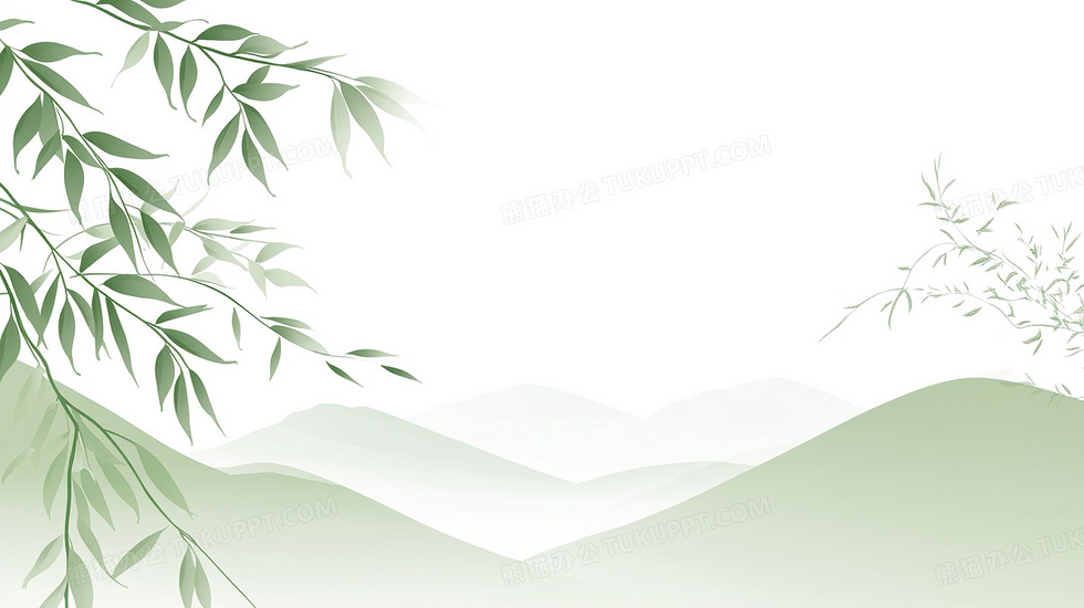 本作品内容为绿色中国风春天山脉背景, 格式为 jpg, 大小2 MB, 图片尺寸为2912 x 1632, 作品中背景图片无需修改, 源文件无水印,可以直接使用, 欢迎使用熊猫办公。 如认为平台内容涉嫌侵权,可通过邮件:tousu@tukuppt.com提出书面通知,我们将及时处理。