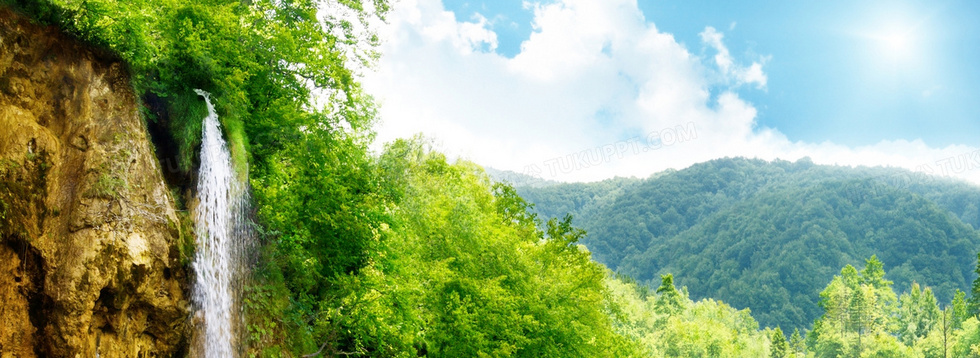 本作品内容为绿色自然角小瀑布风景, 格式为 psd, 图片尺寸为1920 x 700, 作品中背景图片无需修改, 源文件无水印,可以直接使用, 欢迎使用熊猫办公。 如认为平台内容涉嫌侵权,可通过邮件:tousu@tukuppt.com提出书面通知,我们将及时处理。