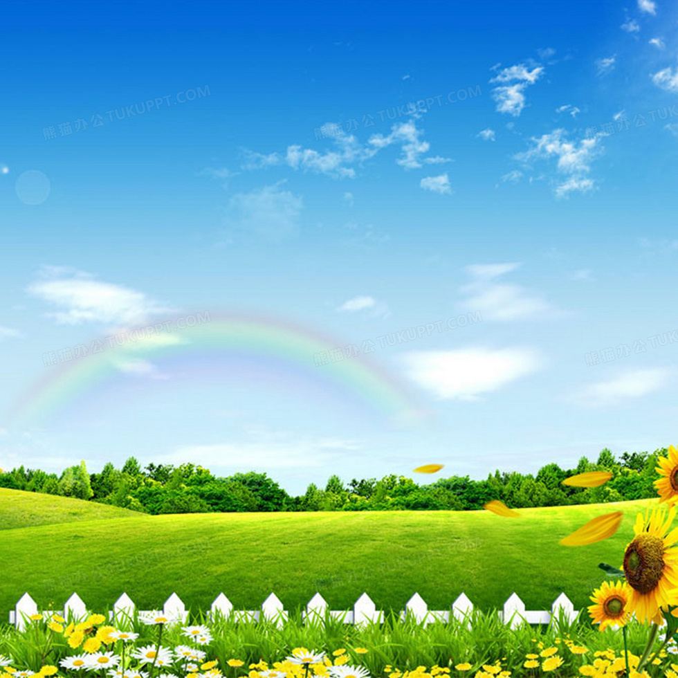 本作品内容为白云蓝天彩虹草地栅栏背景素材, 格式为 psd, 图片尺寸为3500 x 3500, 作品中背景图片无需修改, 源文件无水印,可以直接使用, 欢迎使用熊猫办公。 如认为平台内容涉嫌侵权,可通过邮件:tousu@tukuppt.com提出书面通知,我们将及时处理。