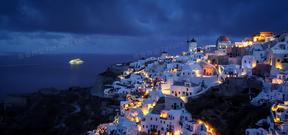 本作品内容为圣托里尼背景图, 格式为 jpg, 图片尺寸为1920 x 900, 作品中背景图片无需修改, 源文件无水印,可以直接使用, 欢迎使用熊猫办公。 如认为平台内容涉嫌侵权,可通过邮件:tousu@tukuppt.com提出书面通知,我们将及时处理。