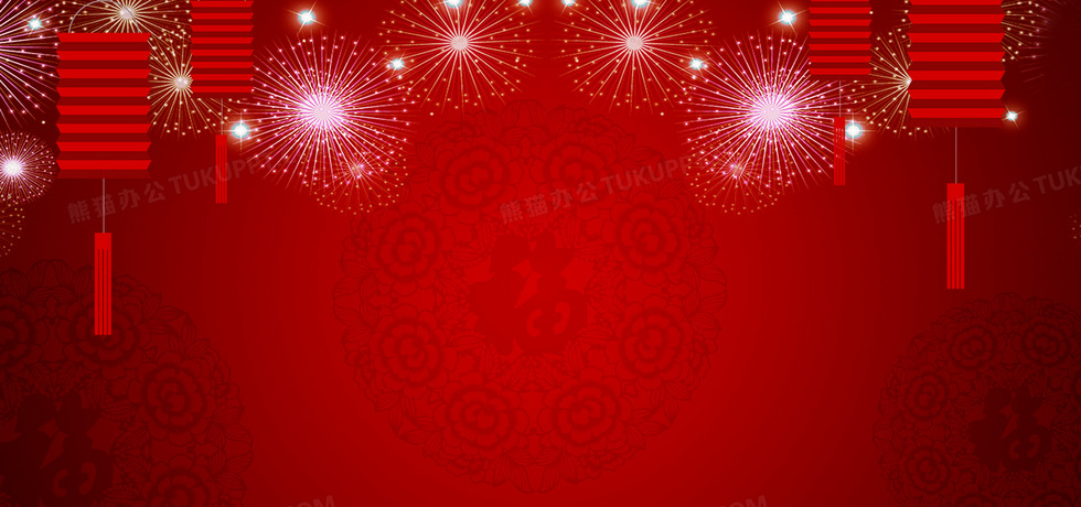 本作品内容为春节喜庆中国风红色海报banner背景, 格式为 psd, 图片尺寸为1920 x 900, 作品中背景图片无需修改, 源文件无水印,可以直接使用, 欢迎使用熊猫办公。 如认为平台内容涉嫌侵权,可通过邮件:tousu@tukuppt.com提出书面通知,我们将及时处理。