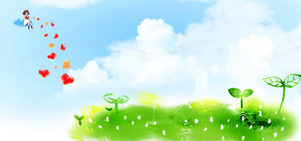 本作品内容为手绘插画背景蓝天白云爱心女孩海报banner, 格式为 psd, 图片尺寸为1920 x 900, 作品中背景图片无需修改, 源文件无水印,可以直接使用, 欢迎使用熊猫办公。 如认为平台内容涉嫌侵权,可通过邮件:tousu@tukuppt.com提出书面通知,我们将及时处理。